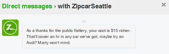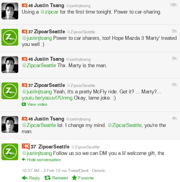 Let’s take a look at an example. Recently, a coworker passed along the following exchange he had with car-sharing service @zipcar: